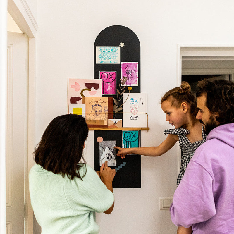 Magnetic self-adhesive wall wallpaper in the shape of an arch. Narrow so that it can be placed on surfaces of limited width, it can give a different tone to the space. At the same time, it is suitable for using it to hang and easily find notes.