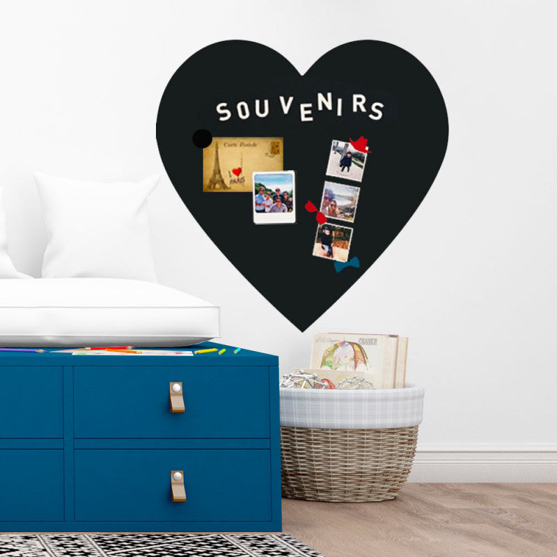 Μαγνητικός αυτοκόλλητος πίνακας σε σχήμα καρδιάς για να διακοσμήσεις το δωμάτιο ενώ το χρησιμοποιείς είτε για να τοποθετηθούν οι δικοί σου μαγνήτες, είτε για να κολλήσεις τις αγαπημένες σου ζωγραφιές, φωτογραφίες, ή, ακόμα, και για να σχεδιάσεις τις δικές σου. 'Η, για την καθημερινή ανταλλαγή σημειώσεων μέσα στην οικογένεια. Περιέχεται ένα σετ από μαγνήτες σε χαριτωμένα χρώματα και γεωμετρικά σχήματα.