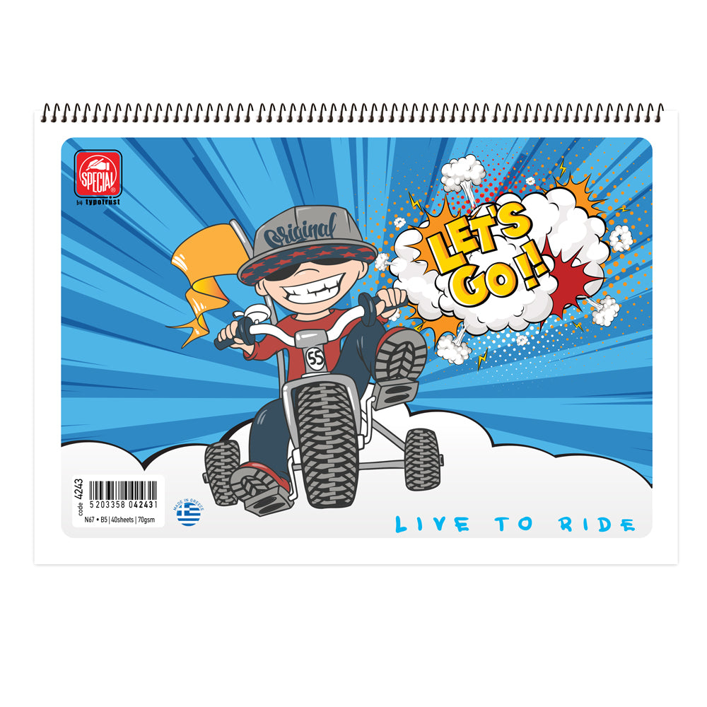 Drawing pad of 40 small sheets, size B5, with a 300 gr cardboard cover (the cover design is modified depending on availability).
