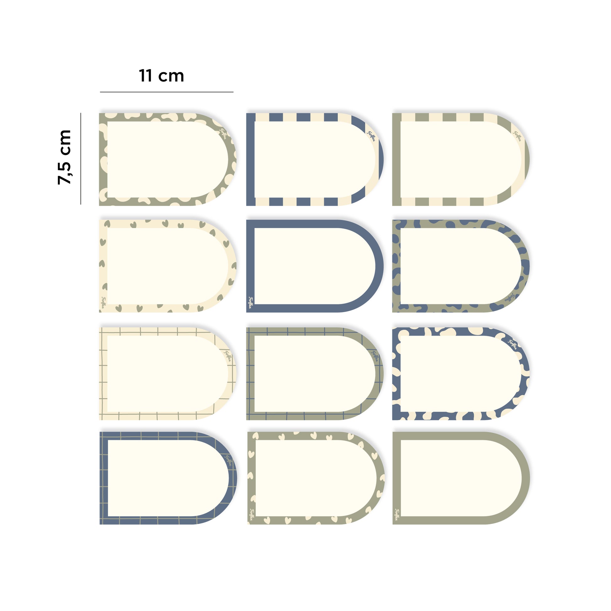 Το σετ αποτελείται από 12 μαγνήτες σε σχήμα αψίδας, με διαφορετικά χρώματα για να οργανώσεις τις σημειώσεις σου σε κατηγορίες, αν θέλεις. Κάθε αψίδα έχει διαστάσεις 11 x 7.5 εκ.. Περιέχεται ένας μαρκαδόρος κατάλληλος για ασπροπίνακα με βάση μαγνητική.