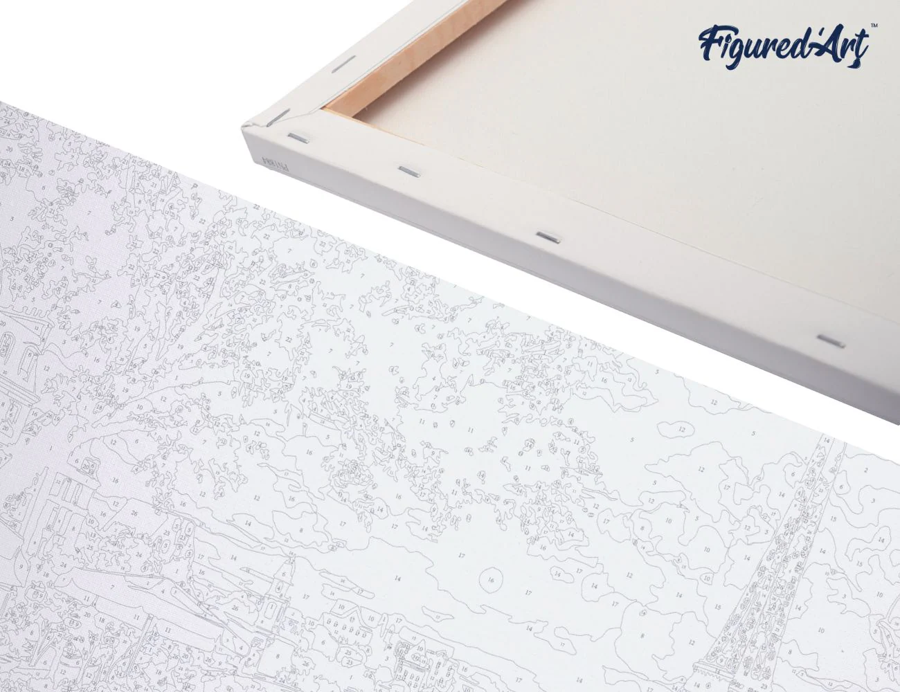 · Ένας καμβάς με ξύλινο τελάρο, τυπωμένος με το σχέδιο που έχεις επιλέξει και αριθμούς, ανάλογα με το χρώμα με το οποίο καλείσαι να χρωματίσεις κάθε ορισμένη περιοχή.