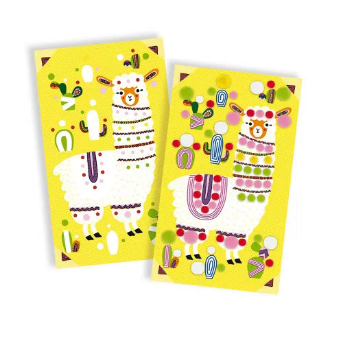 Contents: 3 boards with adhesive dots, 200 pom-poms and 2 colors of yarn, one spatula