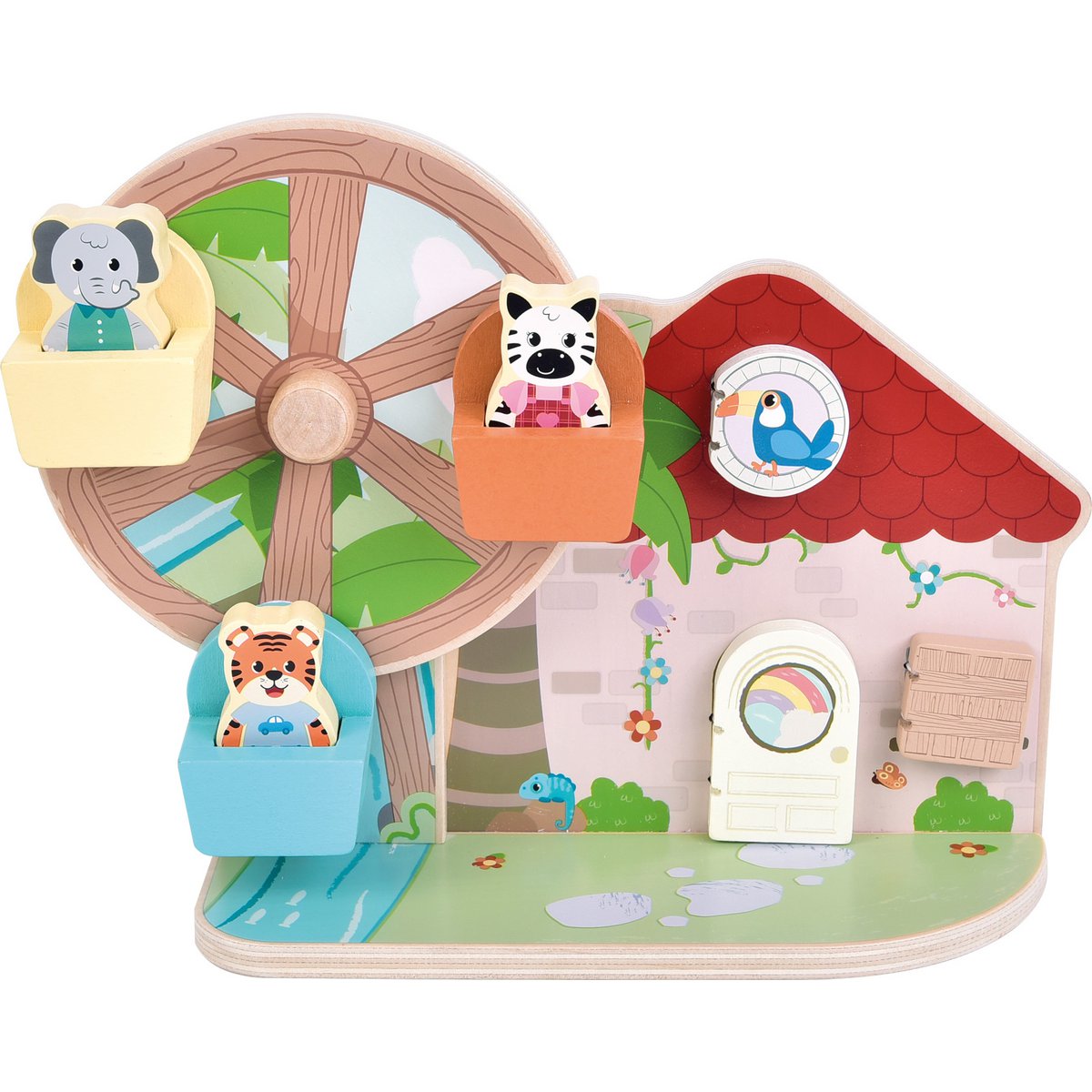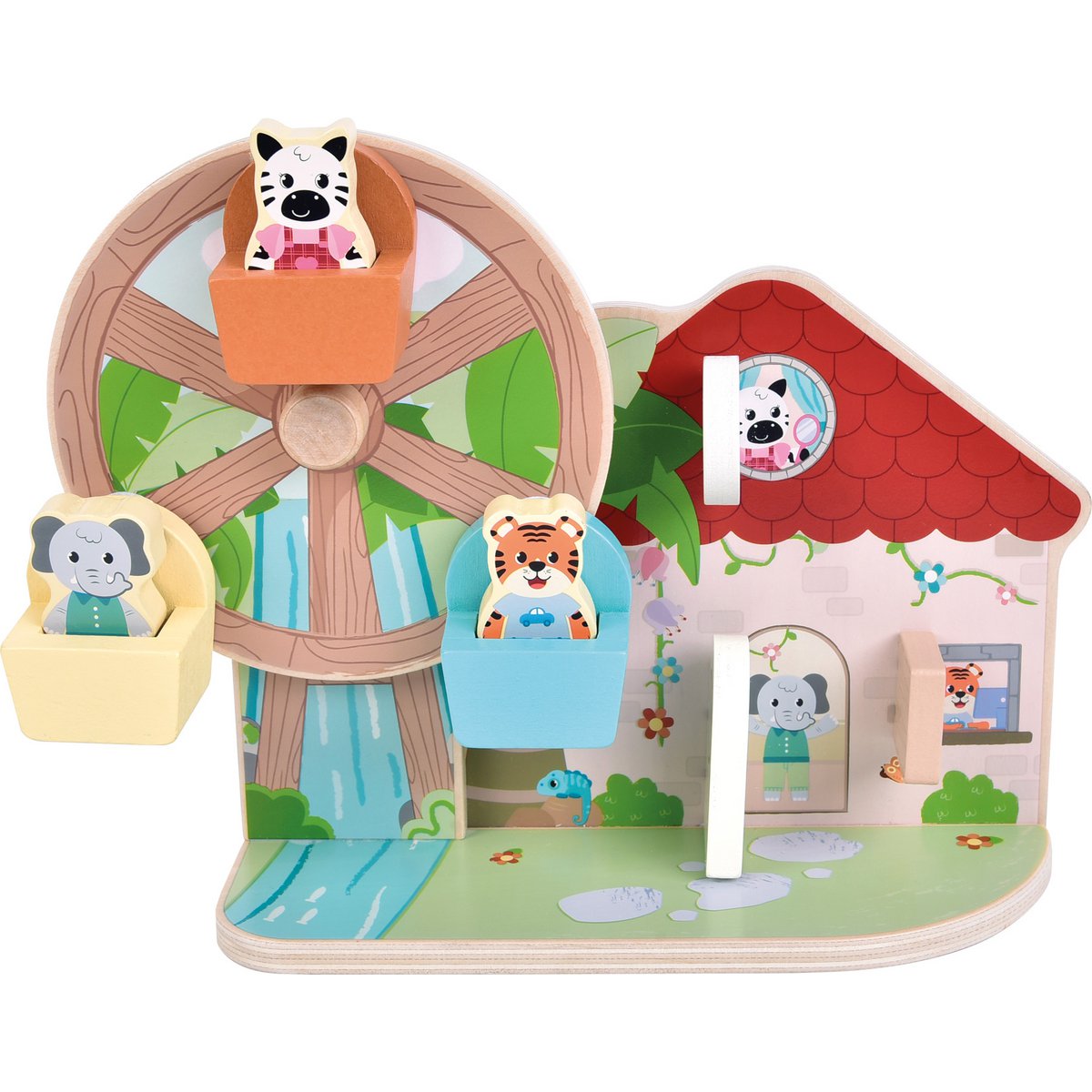 Βάλε τα ζωάκια στις θέσεις και κάνε τα βόλτα στη ρόδα του λούνα παρκ. Άνοιξε την πόρτα και τα παράθυρα του σπιτιού για να δεις τί κρύβουν μέσα.