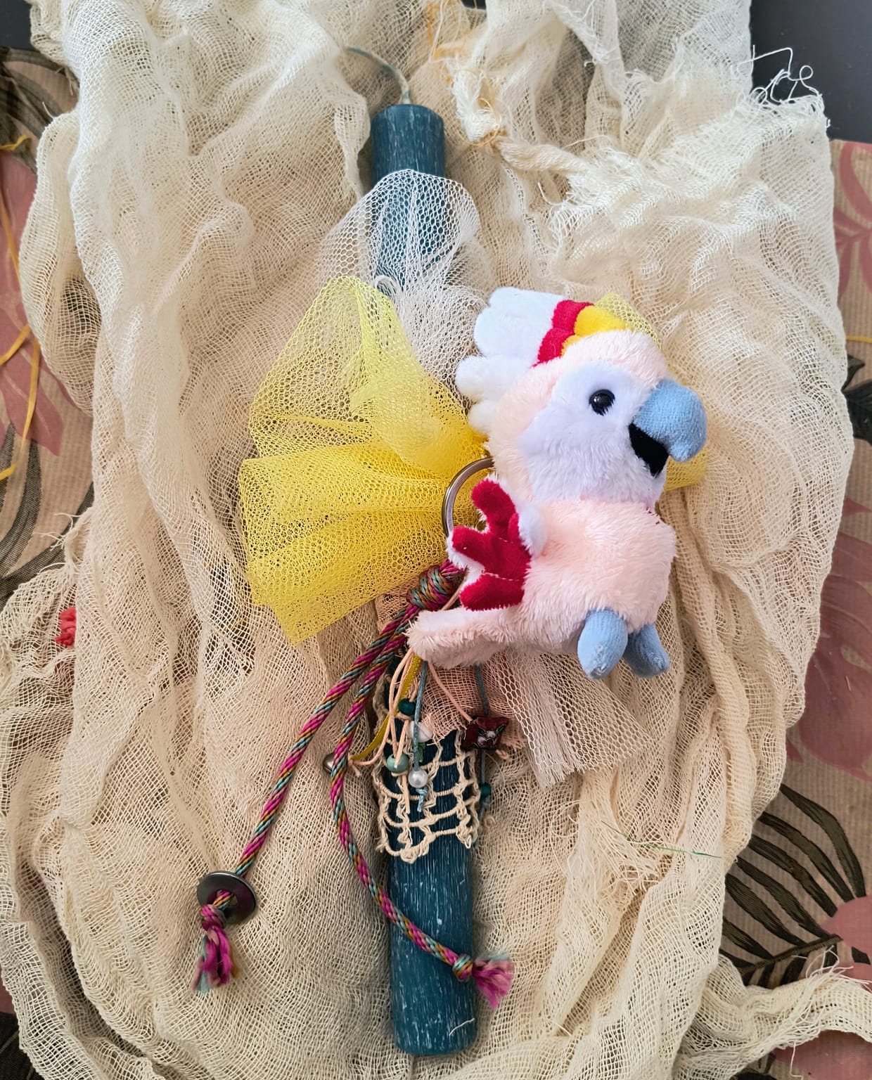 Λαμπάδα αρωματική με μπρελόκ κουκλάκι παπαγάλο