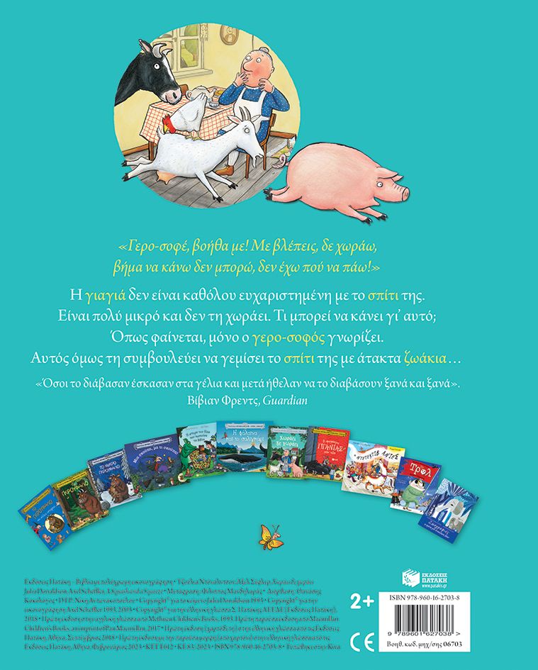 Η ιστορία ξεκινά με μία γιαγιά που ζει μόνη, παρόλα αυτά νιώθει ότι το σπίτι της είναι πολύ μικρό γι'αυτήν. Έτσι, συμβουλεύεται τον γερο-σοφό για να την βοηθήσει να λύσει το πρόβλημά της. Η έκβαση της ιστορίας, βγαλμένη από την ανθρώπινη συμεριφορά, θα δώσει ένα δίδαγμα στους μικρούς αναγνώστες με τον υπέροχο τρόπο που μόνο η Ντόναλντσον καταφέρνει στα βιβλία της.