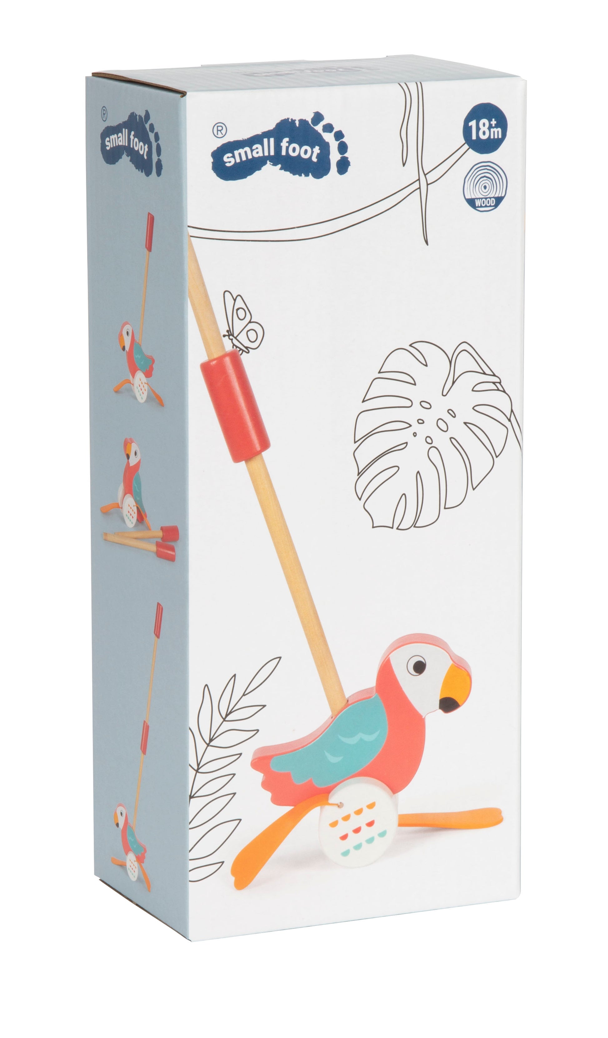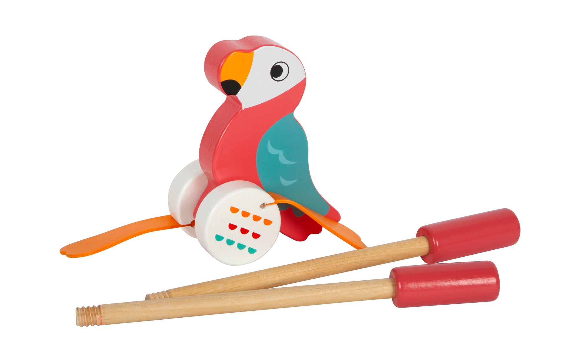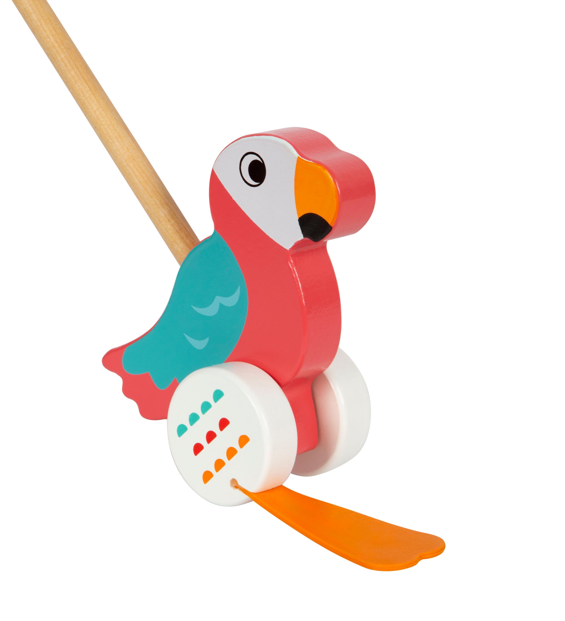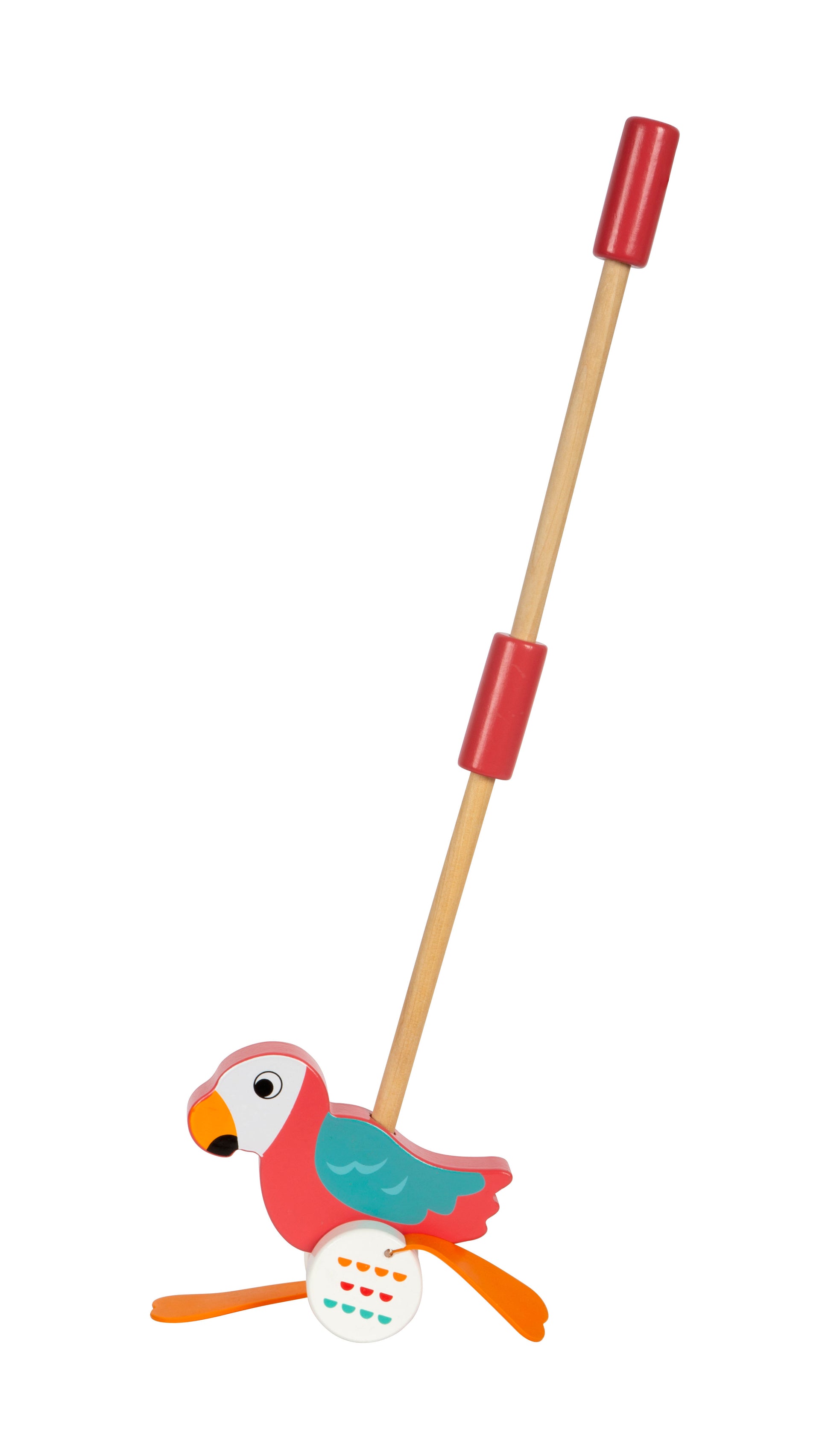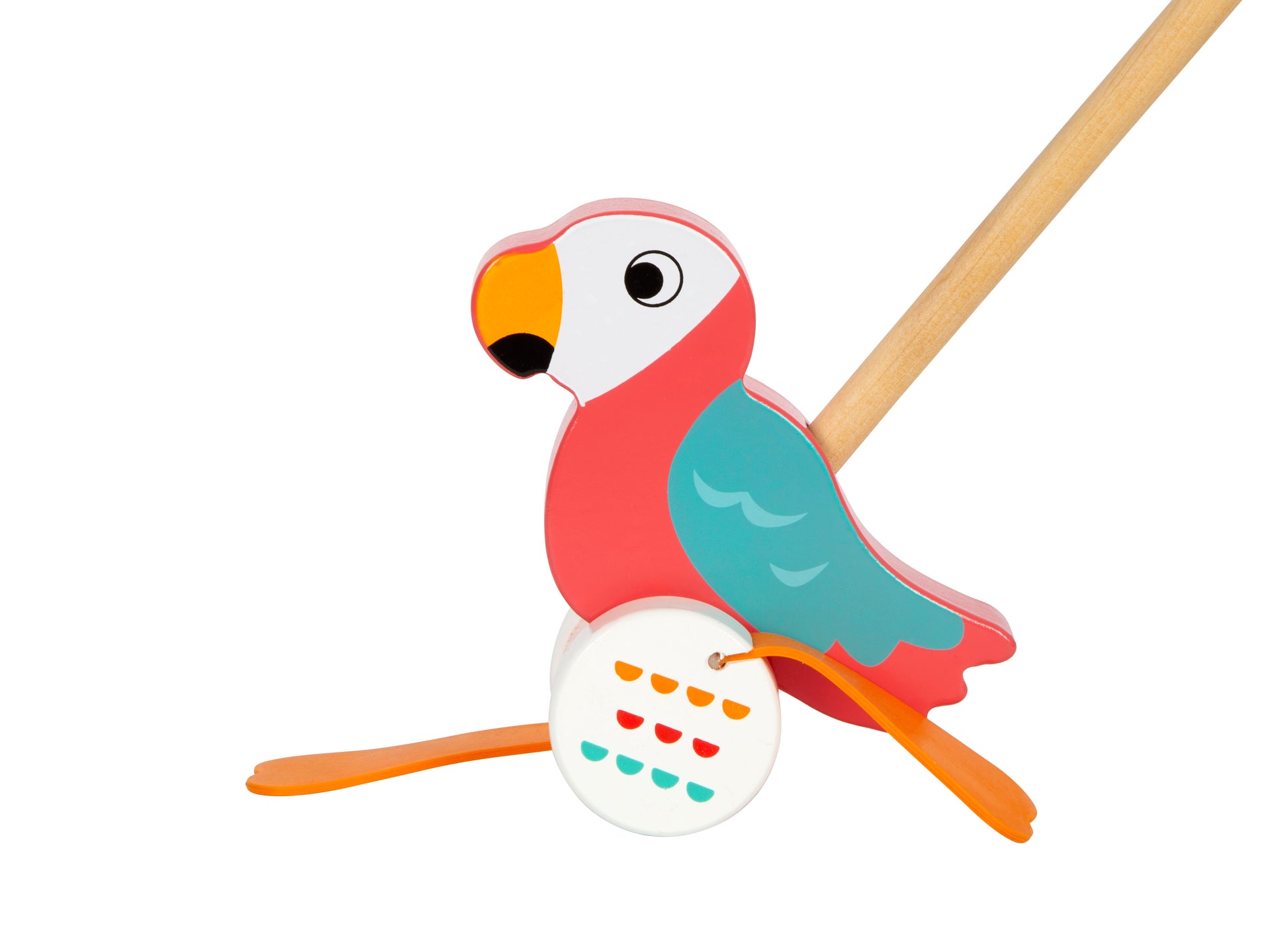 Πιάσε το μπαστούνι και σπρώξε το μπροστά σου για να δεις τον παπαγάλο να περπατά, κάνοντας αστείο ήχο με τα λαστιχένα πόδια του.