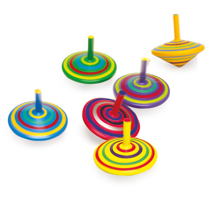 Σετ αποτελούμενο από 6 πολύχρωμες σβούρες με ρίγες για τρελές περιστροφές.